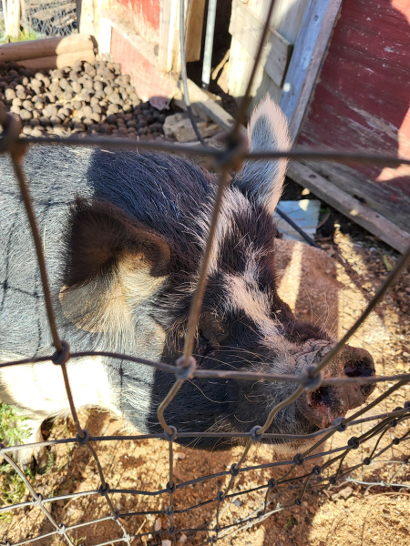 Meet Lenny, he's our very friendly Kune Kune pig.  He loves people and treats.  He may even do a trick for you to get a treat.